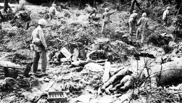 On the evening of the twenty-first of June, Generals Ushijima and Cho sat down to a sumptuous meal in their home under Hill 89. Overhead the Americans walked on top of the escarpment, where Japanese soldiers continued to resist them by fighting for every rock and tree.